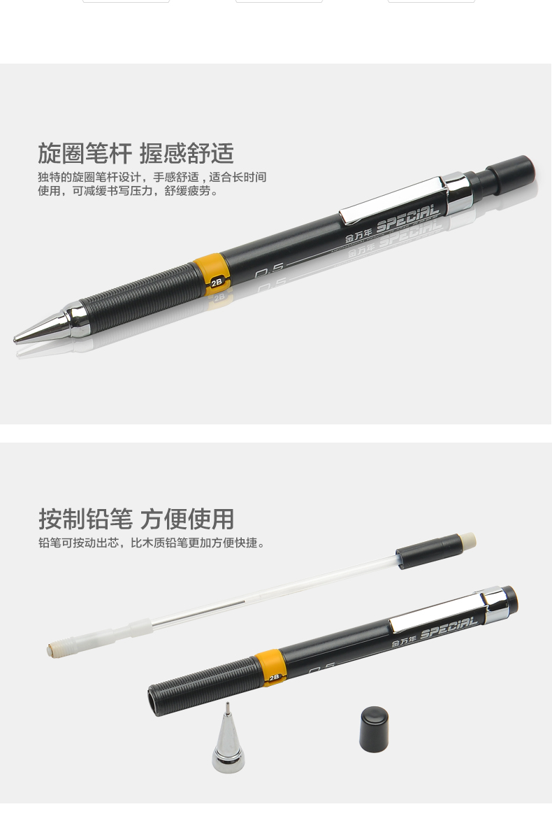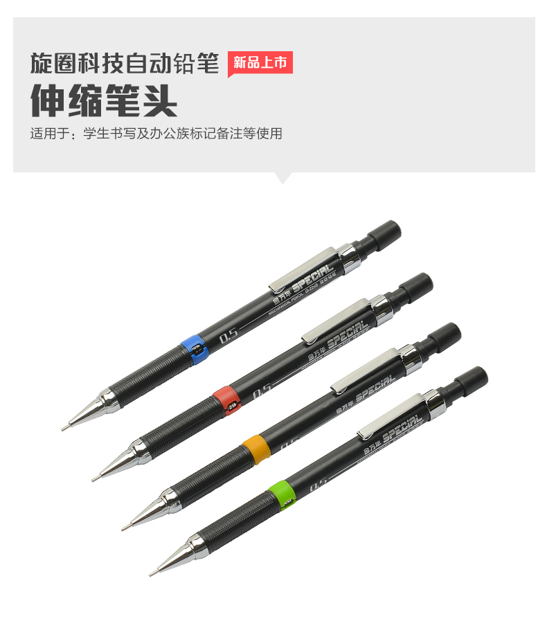 您当前的位置: 首页 > 自动铅笔 > 竖条钢夹旋圈科技0.5mm针管2B自动铅笔